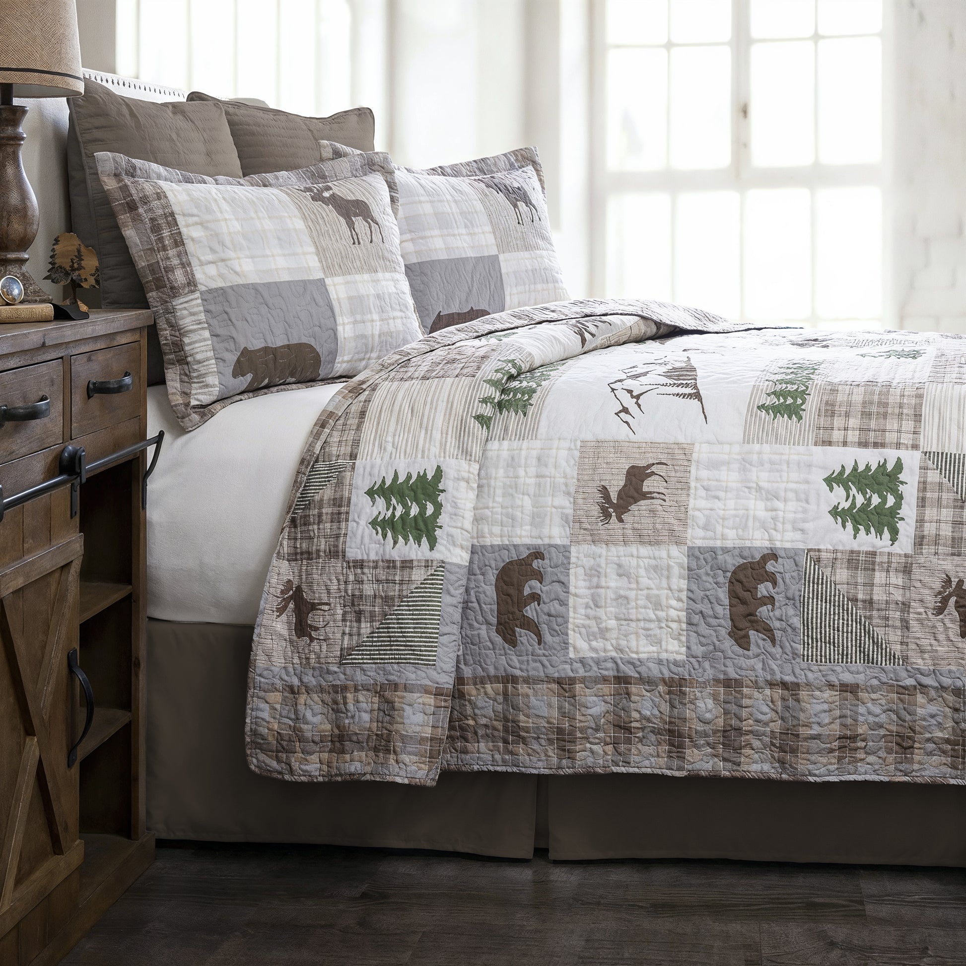 Introducing our Glacier Peak Quilt Bedding Set – a cozy fusion of rustic charm and wilderness allure. Immerse yourself in the warmth of a mountain retreat with this meticulously crafted quilt ensemble, featuring iconic elements of the great outdoors.